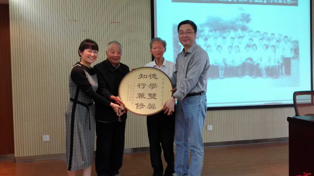 接下来,66届系友李守学、陈国泰代表66届校友,向母系捐赠了挂盘一枚,以感谢母系的培养之恩。