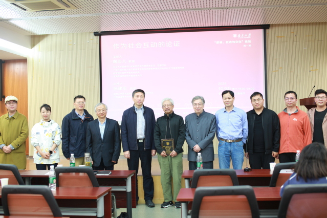 讲座最后,王恒院长为鞠实儿教授颁发“逻辑、社会与文化”论坛主讲纪念牌,并与出席讲座的老师合影留念。长达两个半小时的生动精彩且极具启发价值的讲座与研讨,在全场热烈的掌声中圆满结束。