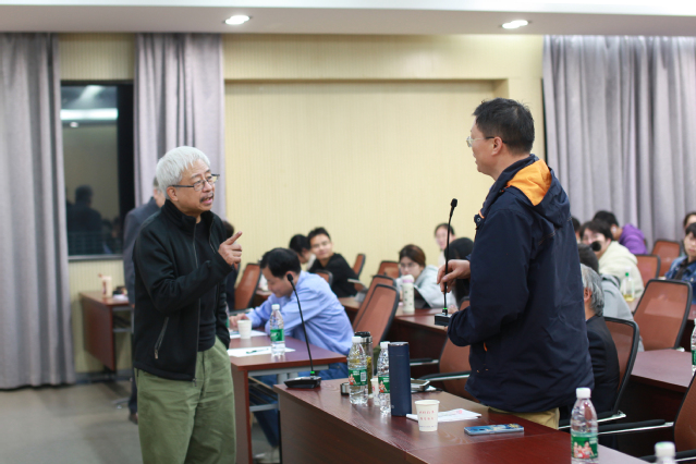 在讲座问答环节,主持人张建军老师和出席会议的王恒、顿新国、苏向荣、马前进、南亚伶、杨忻程、郑天祥等校内外老师及多位同学与鞠老师展开了长时间热烈的研讨,内容涉及“广义论证与古今社会、文化的关系”“广义论证理论的评价标准的合规则性与狭义论证的有效性的关联”,“论证与论辩的区别”,“社会群体间的交互性与公共性”,“不同社会群体间的社会规范如何确定”,“客位视角与主位视角的相互转换”,“广义论证研究过程中何时、如何修正规则及其修正根据”,“本土化规则与主位规则的关系”,“广义论证理论是否存在元理论结构”,“隐喻、相干性与广义论证的关系”等多方面问题,鞠老师均一一予以精彩回应。鞠老师在回答中再次强调了广义论证理论与经典论证理论的区别,广义论证是面向生活世界的实际论证,其前提与规则是随着语境不断变化的,规则会根据使用效果进行动态修正;但这与主位视角下的跨界交互并不矛盾,不同文化间的交流并没有建立客观性而只是某种公共性。此外,为了保持描述恰当性与解题高效性之间的合理张力,广义论证方法与形式逻辑方法需要互补,也即对论证过程进行局部合理的逻辑重建。比如在忽略语境变动的条件下,仍然可以构建形式逻辑的有效性标准。