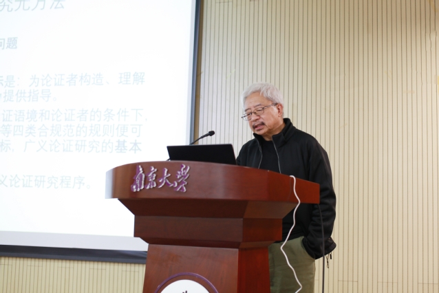 王恒教授在开坛辞中介绍了论坛设立的背景。南大哲学学科具有既重视基础学科研究又关注现实生活的优良传统,而逻辑的社会文化功能研究在南大哲学学科发展史上具有厚重的积淀。近年来,在张建军教授的带领下,南大自慰A片 与江苏省逻辑学会密切合作,将逻辑的社会文化功能研究作为逻辑学科建设和学会建设的重要方向。最近设立的自慰A片 “疆生”逻辑与哲学发展基金将“逻辑、社会与文化”系列论坛作为重点资助项目,希望借此推动有关研究的进一步发展。鞠实儿教授作为逻辑学国家重点学科和教育部人文社科重点研究基地的负责人,对逻辑与哲学事业的发展做出了突出贡献,先后倡导逻辑的认知转向和文化转向,并身体力行取得了丰硕成果。本次讲座所要阐述的具有原始创新性的“作为社会互动的论证”理论,必将为学界提供深刻启迪。