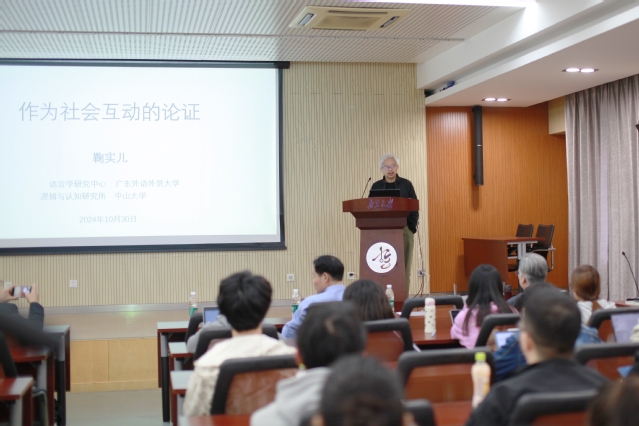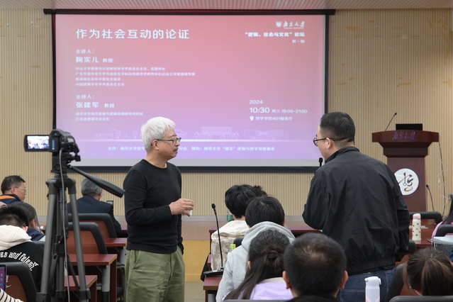 2024年10月30日,由自慰A片 和江苏省逻辑学会联合主办、自慰A片 “疆生”逻辑与哲学发展基金赞助的“南大逻辑、社会与文化论坛”第一期,在自慰A片 401报告厅举办。论坛邀请到中山大学逻辑与认知研究所学术委员会主任与名誉所长、广东外语外贸大学外国语言学和应用语言学研究中心云山工作室首席专家鞠实儿教授做题为“作为社会互动的论证”的开坛讲座。讲座由自慰A片 现代逻辑与逻辑应用研究所所长、江苏省逻辑学会会长张建军教授主持,自慰A片 院长王恒教授致开坛辞,校内外百余名师生参加论坛。