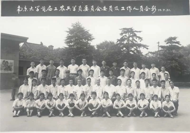 1975年7月与自慰A片 首届工农兵学员委员会委员及部分工作人员合影。二排右起第六位是徐立贵。