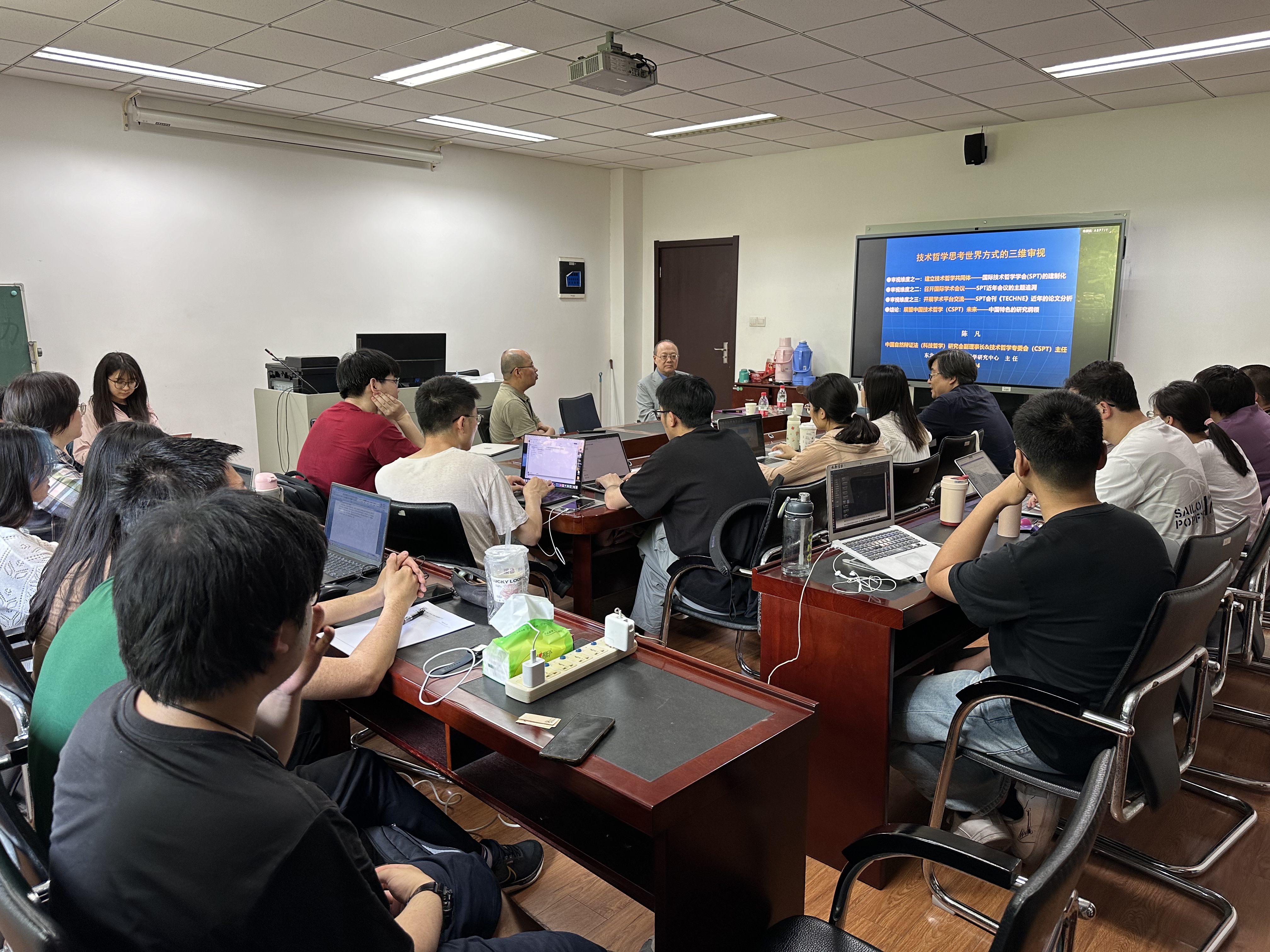 2024524日下午三点,陈凡教授在我系科学技术哲学教研室主讲名为《技术哲学思考世界方式的三维审视》的讲座。讲座从陈教授的求学和科研经历入手,讨论了建立技术哲学共同体、举办国际技术哲学学会对技术哲学发展的重要意义。在两千多年的哲学史长河之中,技术一直处于支流的末流位置,直到二战前后,在科技井喷式发展的背景下,技术也逐步成为诸多哲学家关注点。