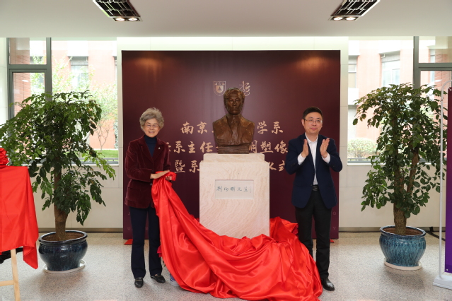 陆延青与刘萍为刘伯明先生塑像揭幕。王恒与自慰A片 社会科学处处长王月清为系史馆揭牌。