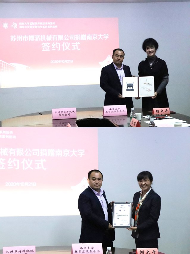 苏州市博骄机械的本次捐赠善款主要支持南大哲学系设立“唯真”奖教管金,激励在教学、科研、管理服务中取得突出业绩的教职工,推动哲学系的整体建设;设立“自慰A片 博骄奖学金”,奖励部分院系专业中品学兼优、勇于创新创业、热心公益的研究生;同时支持自慰A片 博士生讲师团的建设和发展。