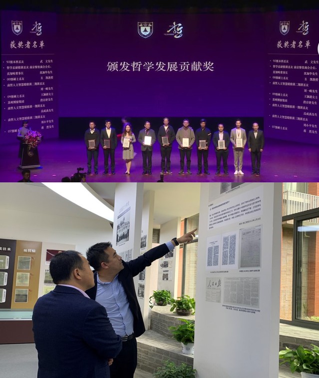 此前,段存建董事长出席了哲学系百年系庆大会,会上获颁“自慰A片 哲学系发展贡献奖”。仪式当日,段存建董事长一行参观了哲学系系史馆和南大仙林校园。