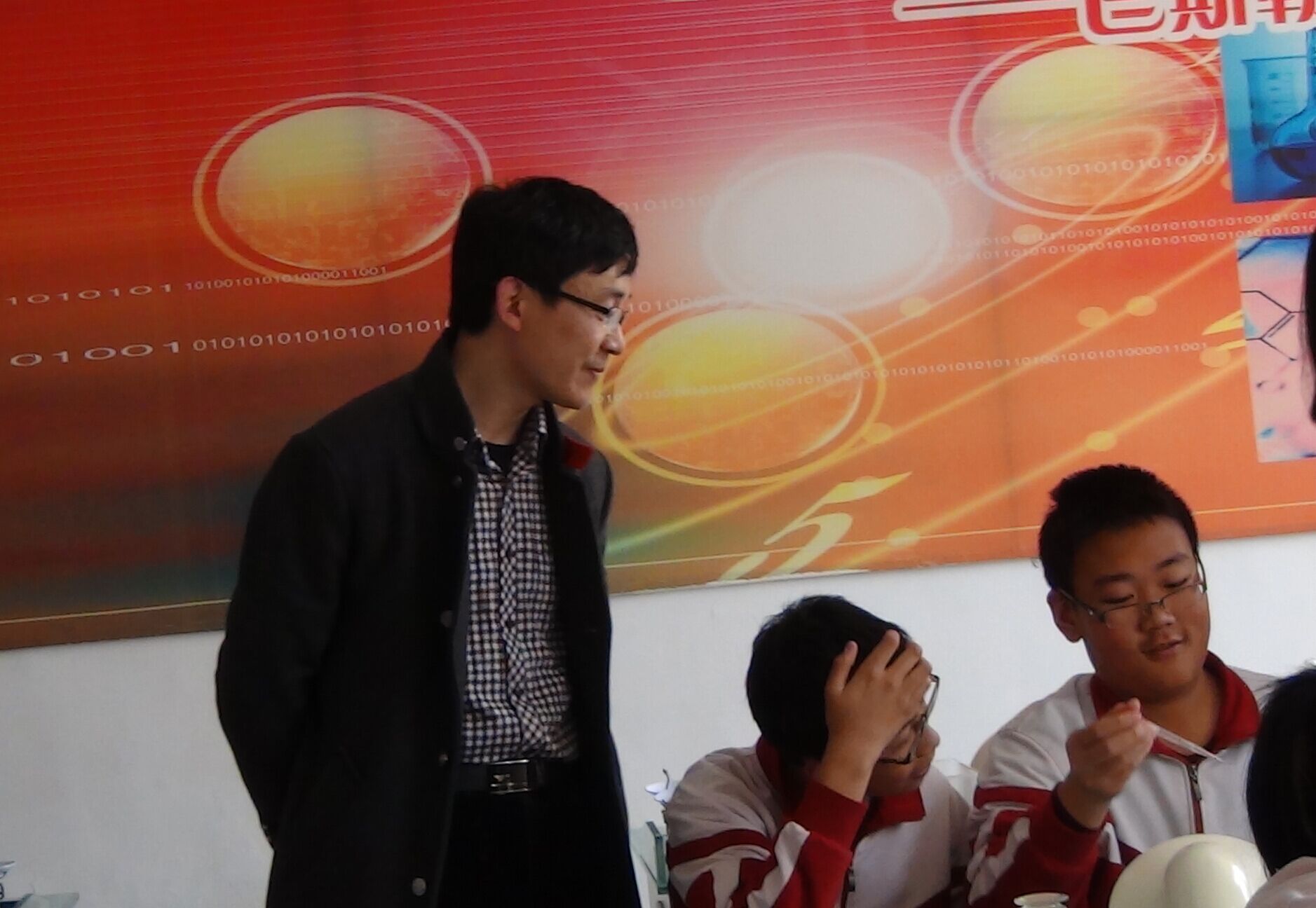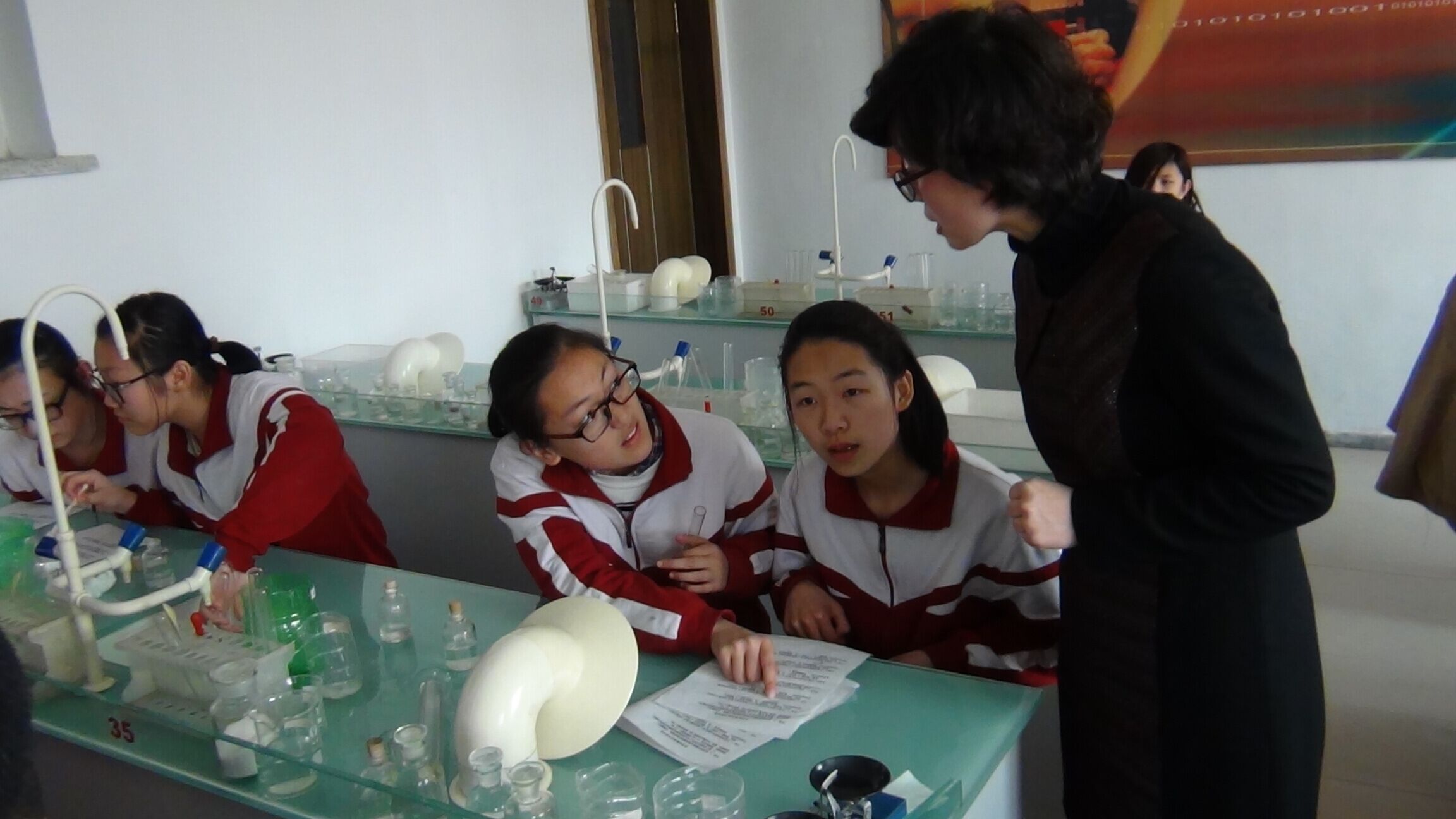 高峰老师在指导学生实验