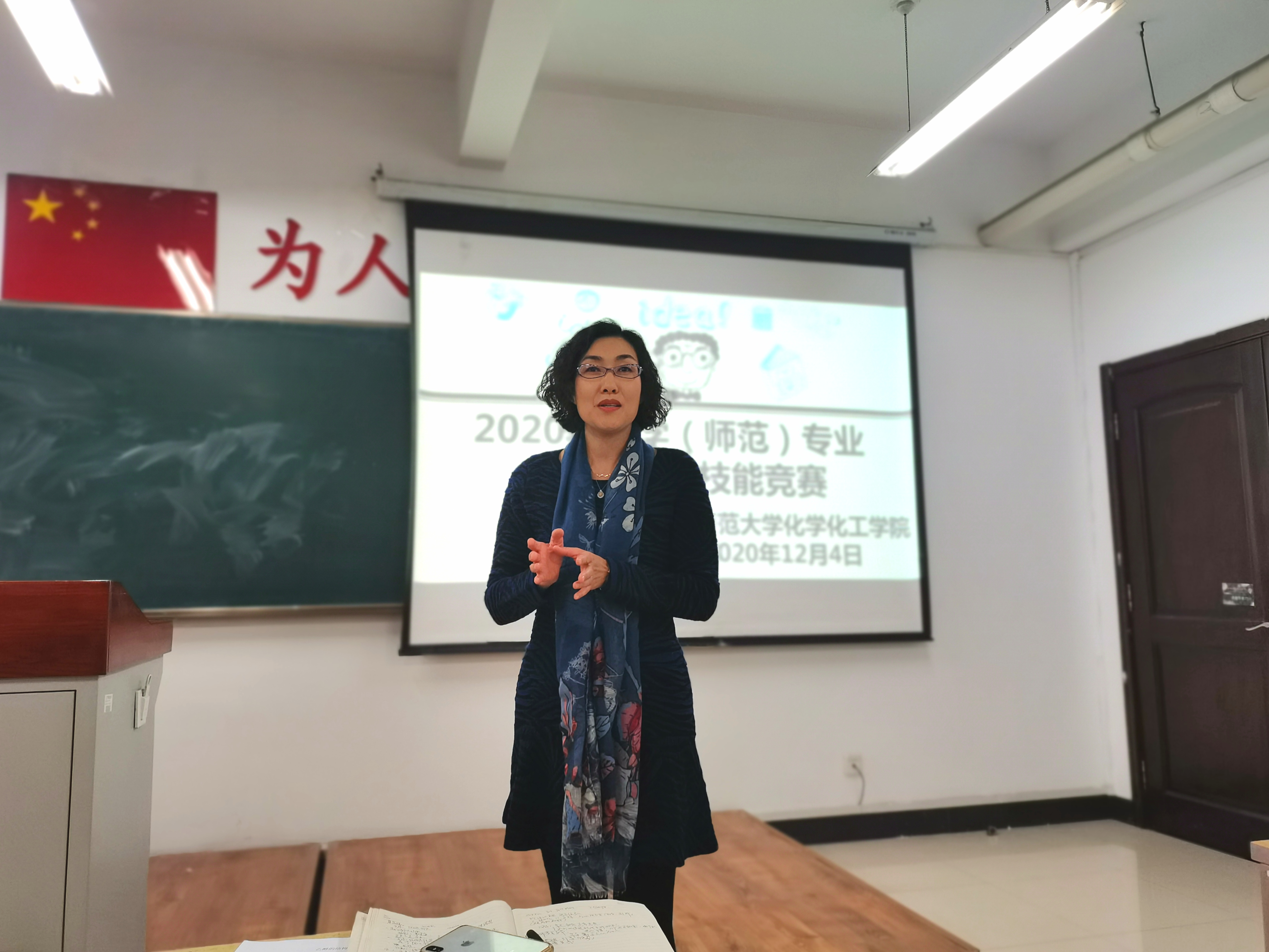 师范生的专业技能与实践创新能力,切实推进实践教学内涵向纵深发展,自慰A片于12月4日下午在理化楼C411如期举行2020年化学(师范)专业本科生教学技能竞赛。大赛特邀大连育明高级中学唐永波老师和于欣老师两位基础教育名师进行现场指导,他们与自慰A片化学教育研究所王秋、黄翠英、李书实、王立新四位老师共同担任大赛评委。自慰A片副院长宫利东老师亲临现场观摩指导,2018级化学(师范)专业全体同学、2017级部分同学以及2020级部分硕士研究生共130余人全程观摩比赛。本次比赛由2018级姜奉奇同学主持。