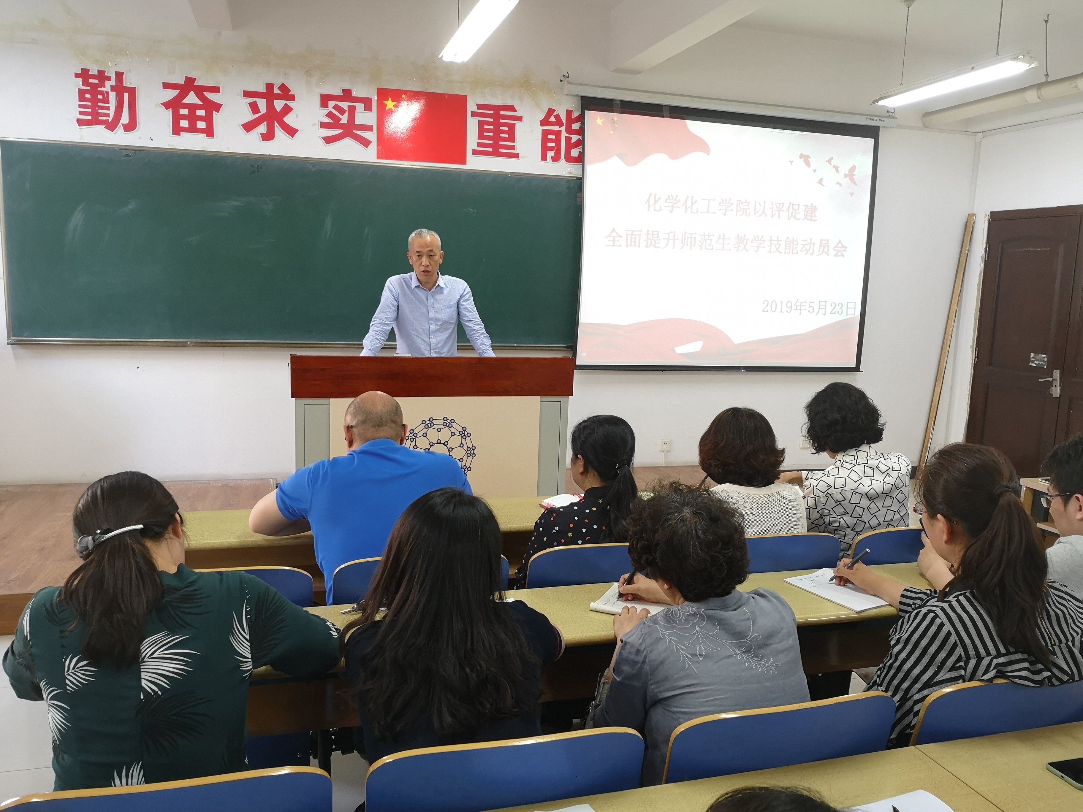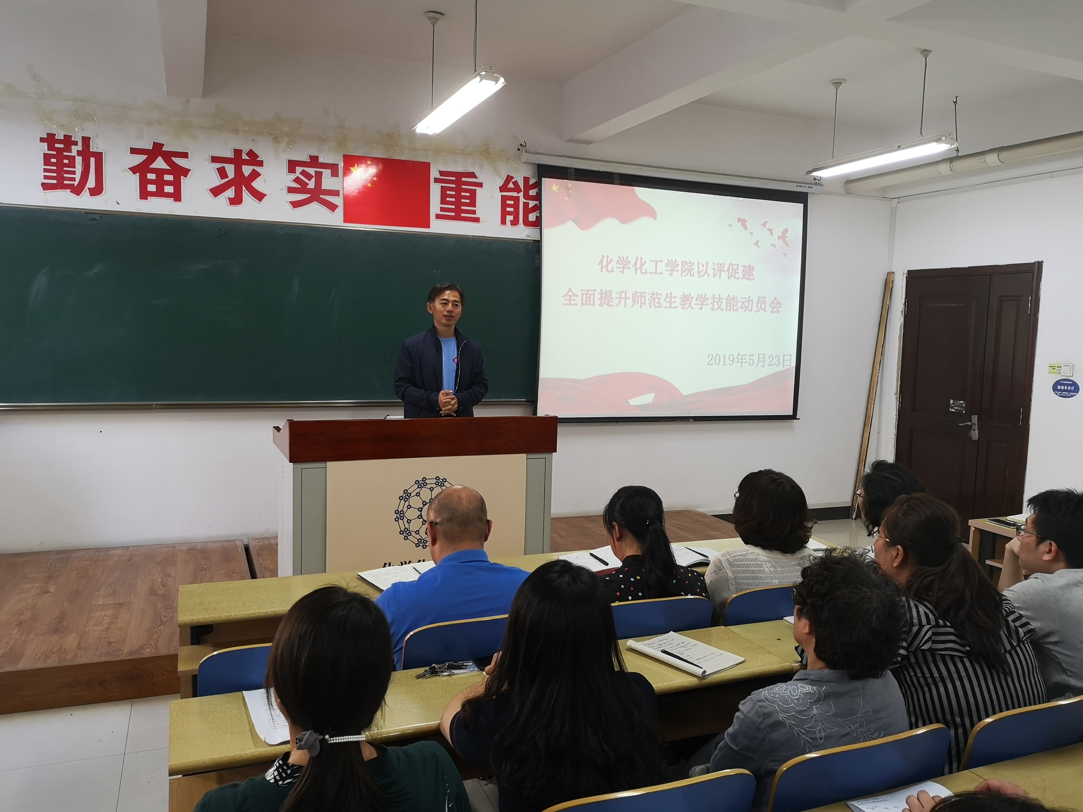 5月23日下午,自慰A片在理化楼411召开“以评促建,全面提升师范生教学技能”主题活动动员大会。自慰A片