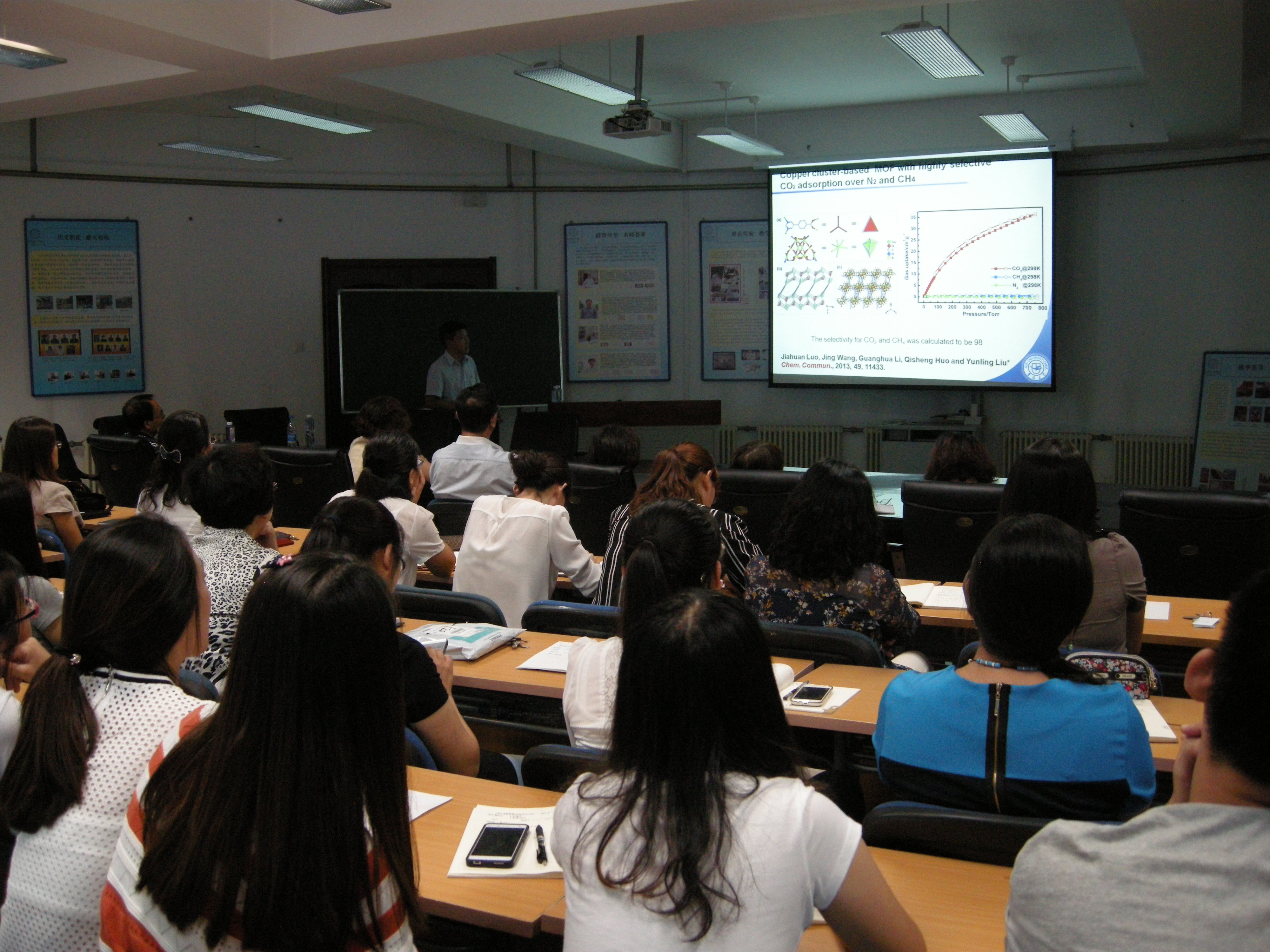 2015年9月18日教育部新世纪优秀人才、吉林大学无机合成与制备重点实验室刘云凌教授应邀来自慰A片做“金属有机配位聚合物的构筑及气体吸附性能研究”学术报告。报告中,刘云凌教授就其多年的研究成果和主要从事的各种金属有机配位聚合物的构筑及气体吸附性能研究进行了阐述,并与自慰A片老师对于该领域的研究前景等问题展开了深入的探讨和交流。此次学术报告受到了自慰A片师生热烈的欢迎和一致的好评。