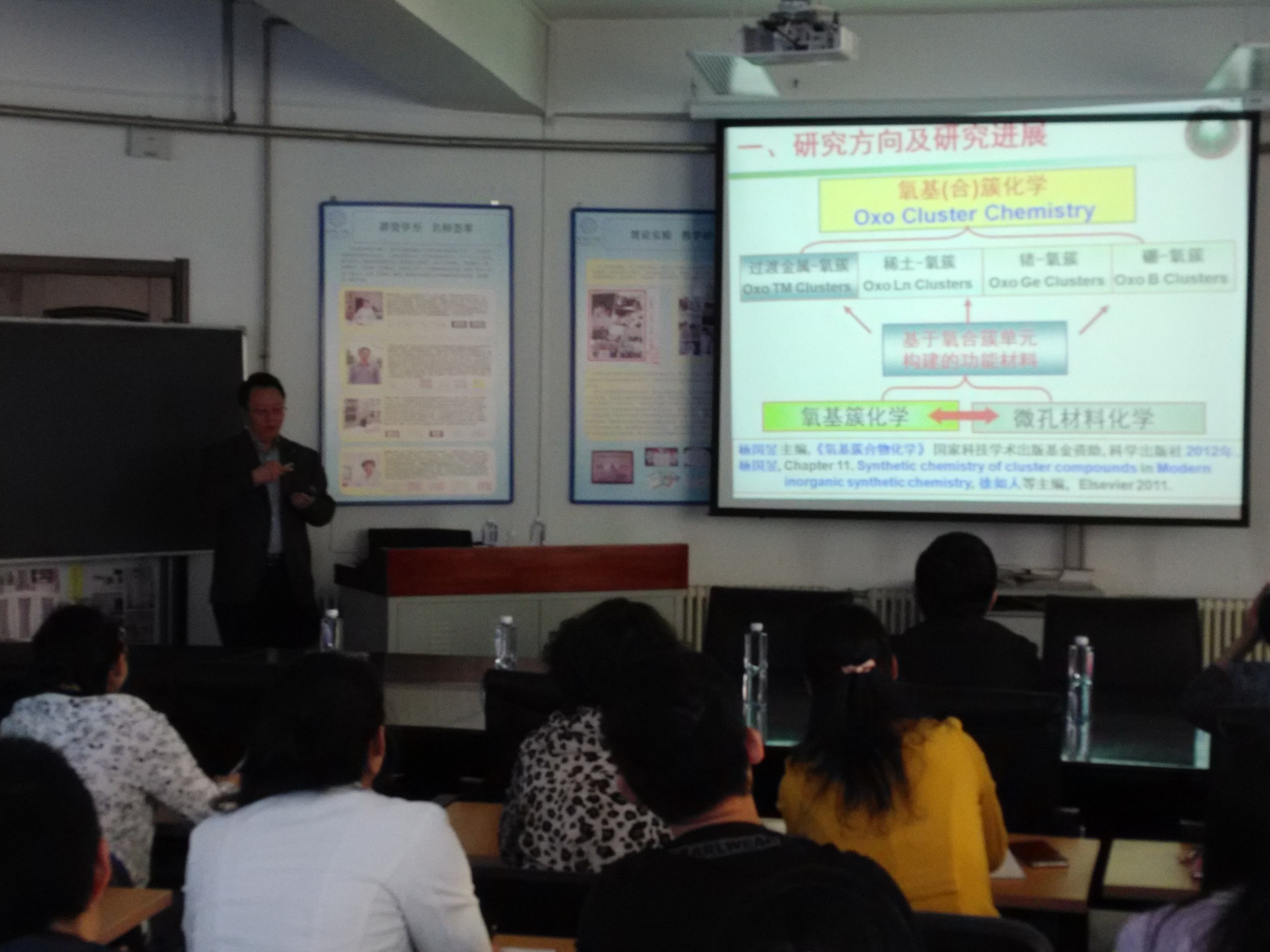 5月15日上午9:00,北京理工大学杨国昱教授受邀在辽宁师范大学理化大楼C区会议室进行了一场题为“簇空旷骨架与簇有机骨架”的学术报告。报告中,杨国昱教授就其多年的研究成果和主要从事的过渡金属-氧簇、主族元素-氧簇、稀土-氧簇等单元构筑的多孔材料及催化材料的研究进行了阐述,并与自慰A片老师对于该领域的研究前景等问题展开了深入的探讨和交流。此次学术报告受到了自慰A片师生热烈的欢迎和一致的好评。