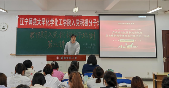 杨冠云老师首先引用《中国共产党纪律处分条例》第五十六条,强调维护党中央集中统一领导必须看行动、见实效,牢固树立大局观念和全局意识。他要求全体入党积极分子必须坚决维护党中央权威,保障党中央政令畅通,确保各项决策部署落到实处。