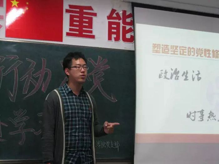 首先发言的是陈楚桥。“唯有砥砺前行,才能不负青春”陈楚桥以一段广告视频“人为什么要活着”开始他的发言。接下来他以自身的经历向我们介绍如何在学习型、服务型、创新型三方面,争做一名合格的学生党员。陈楚桥的发言赢得观众的阵阵掌声,并有同学主动与他交流讨论。