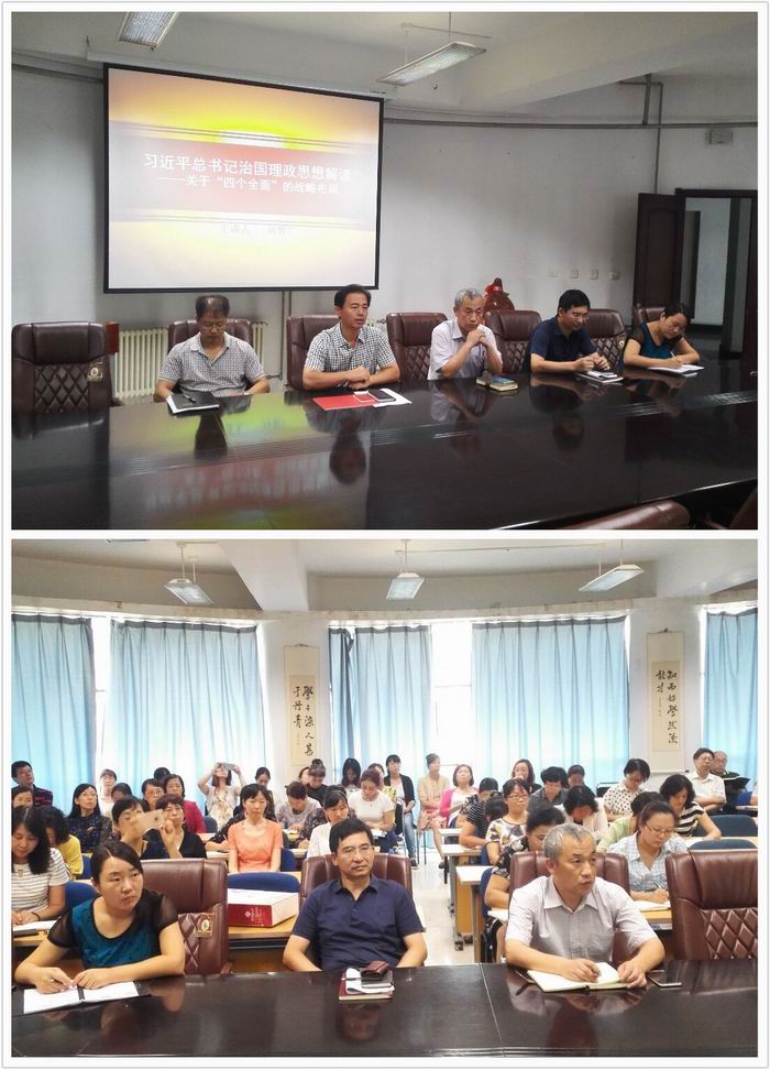 9月13日下午13点30分,自慰A片全体教工在四楼会议室认真聆听了题为《习近平总书记治国理政思想解读——关于“四个全面”的战略布局》的讲座,主讲人为自慰A片党总支书记刘智广。自慰A片