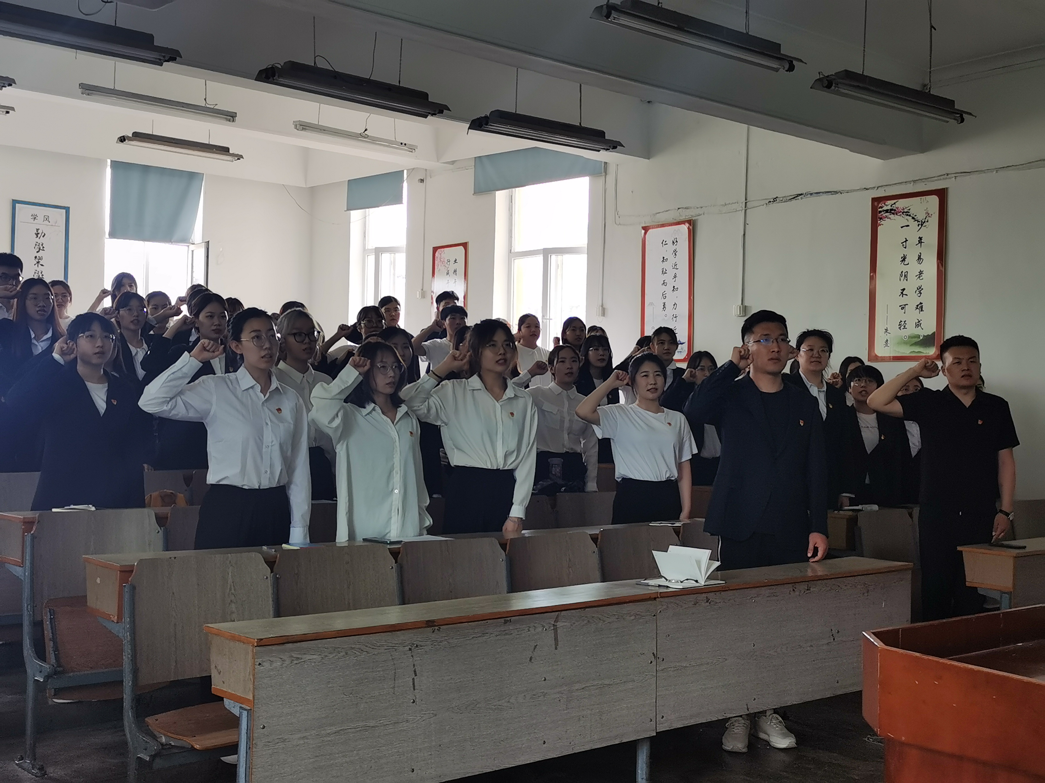 会议伊始,全体党员身着正装,胸前佩戴党徽,神情庄重,精神饱满,共同用嘹亮的歌声合唱歌曲《没有共产党就没有新中国》。随后大家跟随唐志建老师重温入党誓词,字字铿锵、句句发自肺腑,全体党员同志以崇高的信念许下最庄重的承诺。