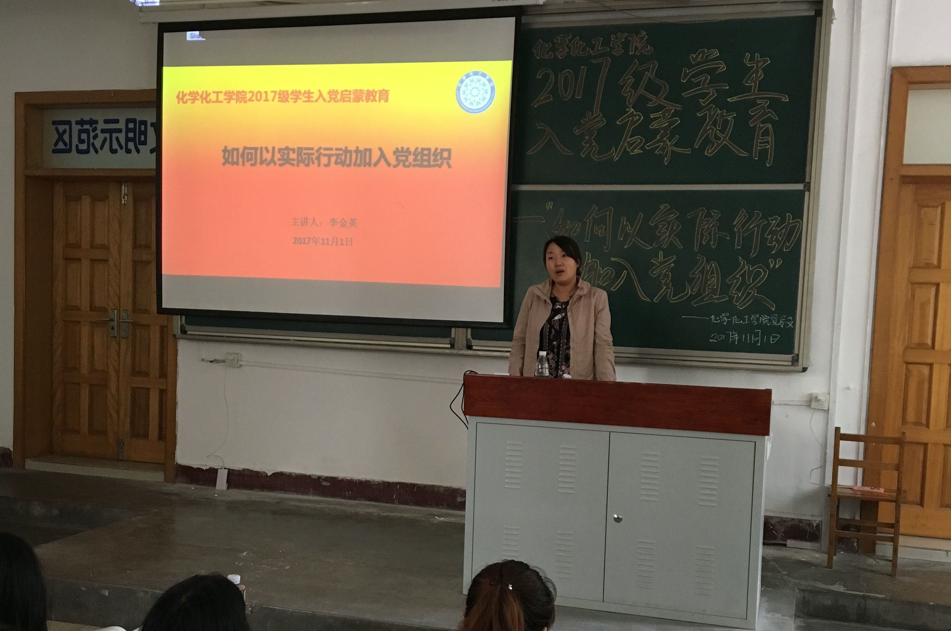 党总支副书记李金英老师做题为“如何以实际行动加入党组织”的专题报告。