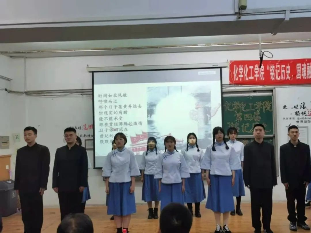 第五组出场的是2020级4班,他们的朗诵主题是《碧血丰碑》。