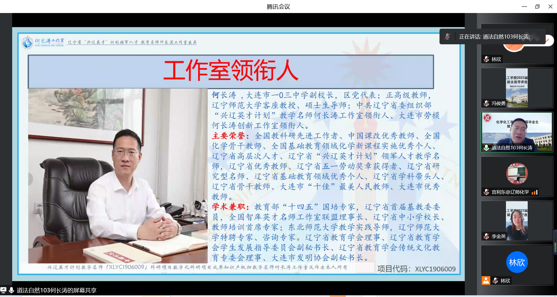学术兼职:教育部国培专家,辽宁省教育学会理事,全国智库英才名师工作室联盟理事长,辽宁省首届基础教育化学教学指委会委员,辽宁师范大学兼职教授、硕士生导师、特聘专家、咨询专家,辽宁省兴辽英才教学名师工作室领衔人,大连市劳模何长涛创新工作室领街人。