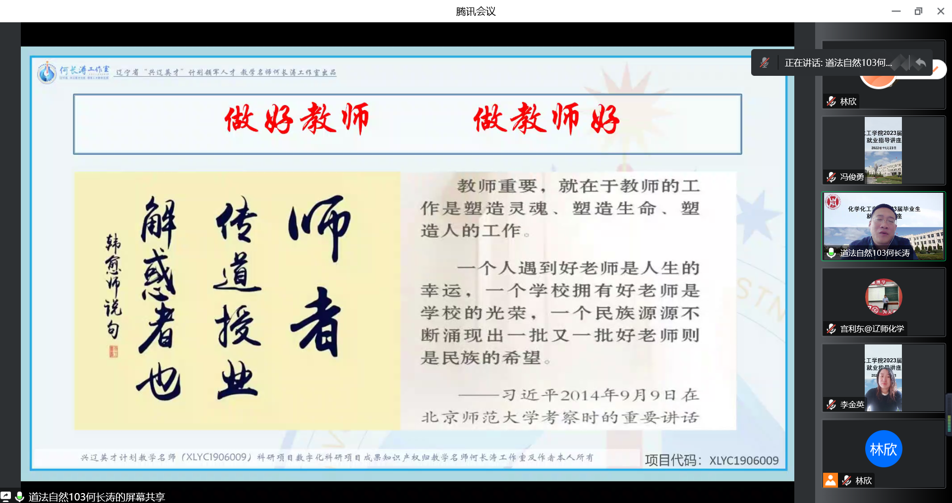 随后,何老师针对新高考、新课标、新教材改革及教育部印发的《普通高校本科招生选考科目要求指引》通知,发表了其对如今高中选课走班情况的独道见解。结合“大连金普新区教育系统招聘2023年全日制毕业生300名(辽师专场)”公告,以具有丰富教学科研经验的长者形象向同学们解读了目前就业形势及教学发展趋势。