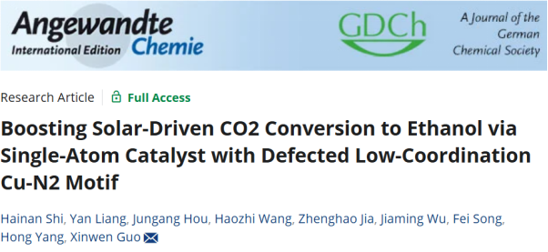 论文信息:Boosting Solar-Driven CO2Conversion to Ethanol via Single-Atom Catalyst with Defected Low-Coordination Cu-N2Motif